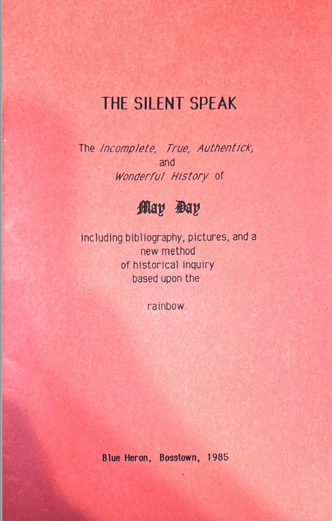 “Blue Heron” was a pseudonym that Linebaugh used and the piece was written while he was living in the Boston area and teaching at Tufts (hence “Boss Town”). This beautiful essay has seen many editions since this 1985 publication. (It is of note that Linebaugh’s book on PM with the title “The Incomplete, True, Authentic and Wonderful History of May Day” states 1986 as its year of origin, whereas this pamphlet appeared in 1985).