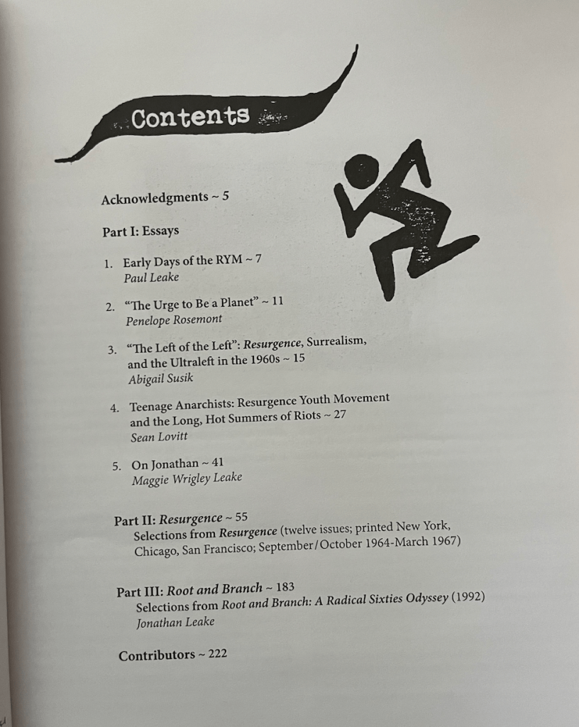 The book is divided into 3 major sections. The first consists of essays that contextualize the Resurgence Youth Movement. Perhaps most relevant and useful for readers of this little blog is scholar Abigail Susik’s essay on the anti-authoritarian left of the 1960s. It it is in Susik’s essay that we learn the neat factoid that the first issues of Resurgence were printed on a mimeograph machine provided to Jonathan Leake by Raya Dunayevskaya after a News and Letters convention (p. 17).
