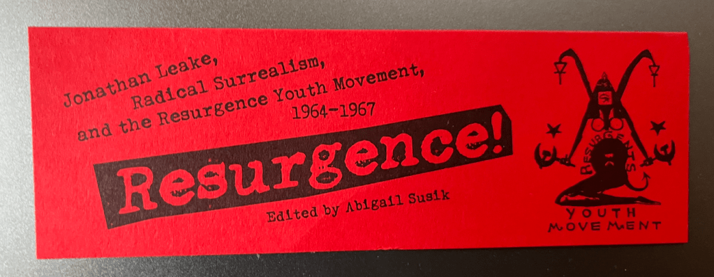 We are extremely excited about the publication of Resurgence: Jonathan Leake, Radical Surrealism, and the Resurgence Youth Movement, 1964-1967, printed in a limited edition of 500 copies by Eberhardt Press in Portland, Oregon.