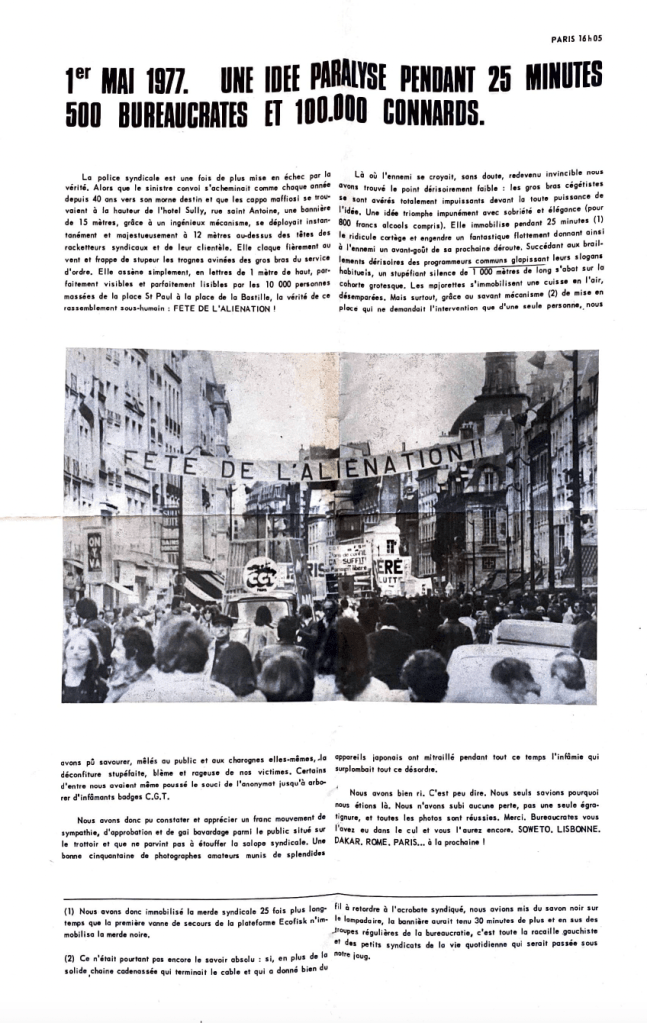 The third English-language edition was a joint publication by Unpopular Books and News From Everywhere in the U.K. This edition is photocopied and comb bound. News From Everywhere was an important and influential publisher of anarchist, autonomist and situationist materials in UK during the 1980s. Unpopular Books, based in London, was also an important publisher of situationist, pro-situ and left-communist materials, and produced pamphlets and books through at least 2012. We do not hold this copy, and a search of OCLC finds that there are no institutionally-held copies of it, either. (We suspect an anarchist library in the UK probably has a copy, but those, perhaps regrettably, don’t make it into OCLC).